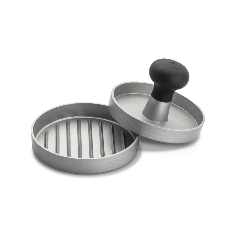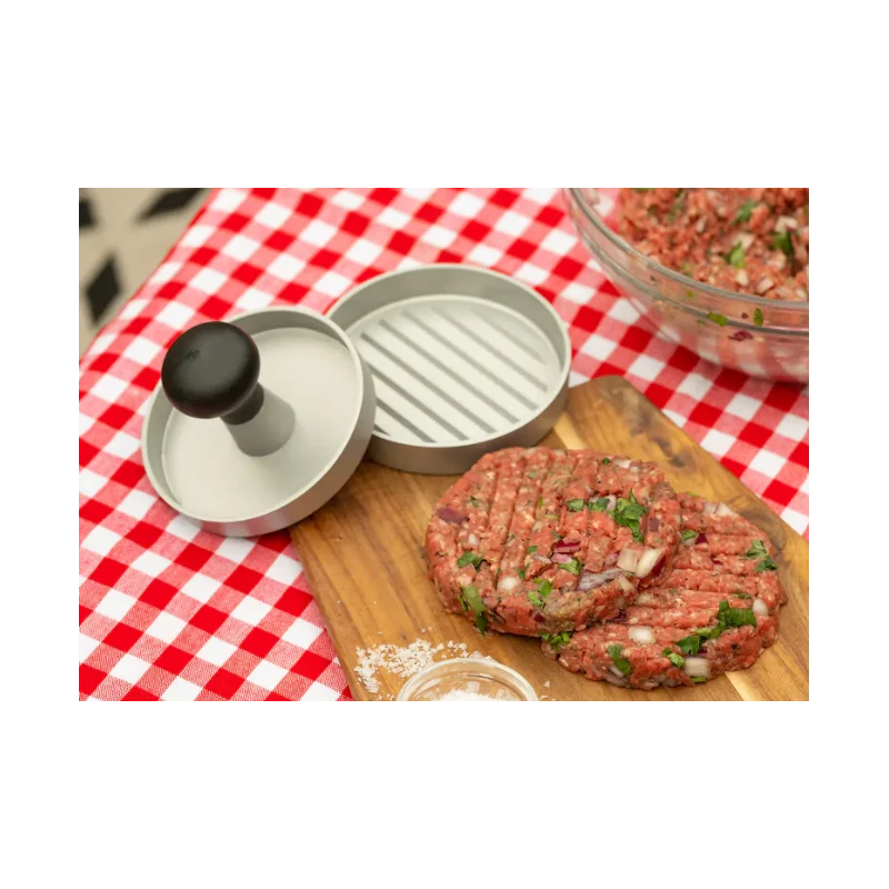Obtenez des steaks à hamburger parfait, avec le presse à hamburger de CADAC ! Les rainures permettent de garder l’aspect typique du steak.