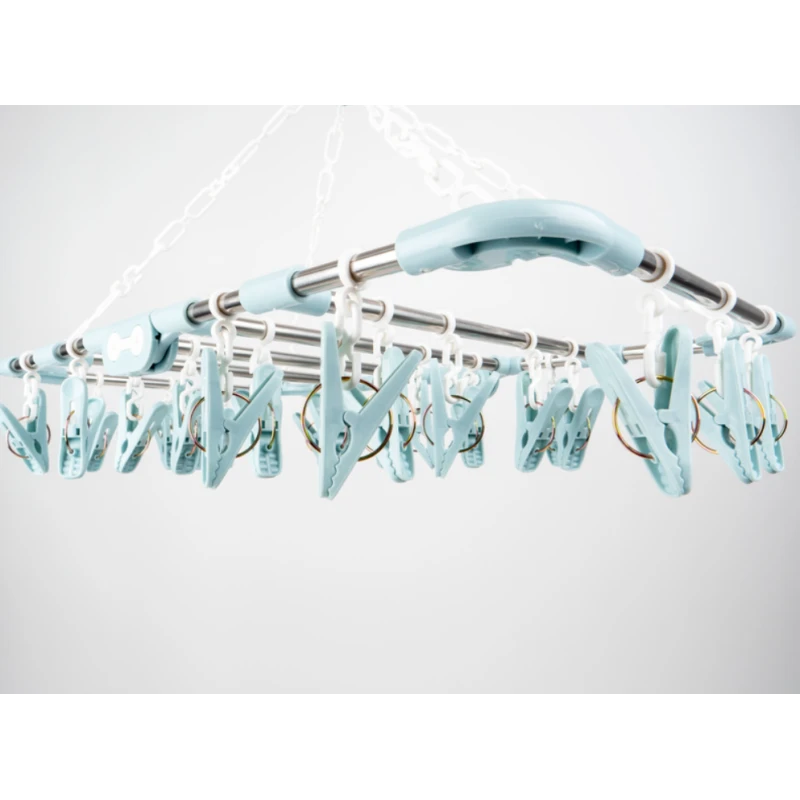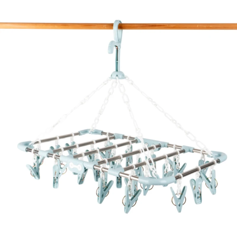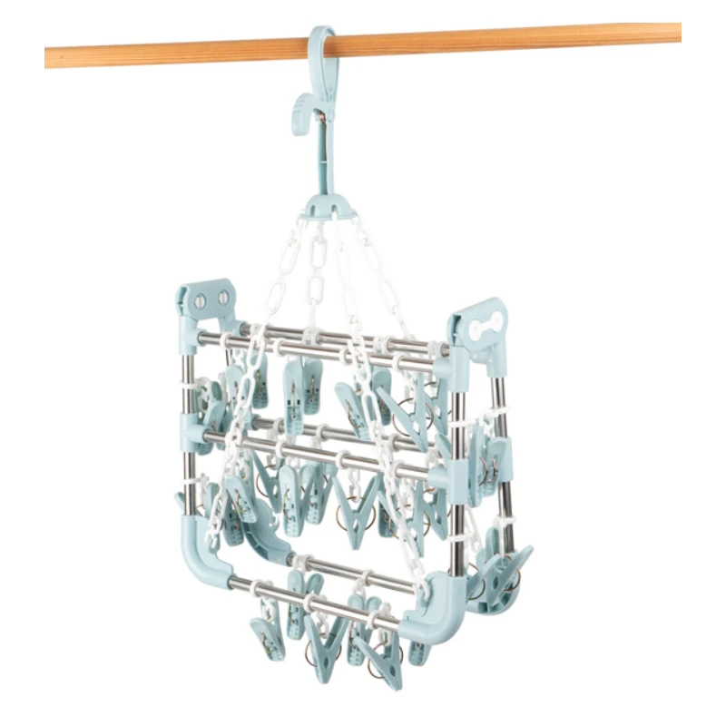 Grand séchoir type tourniquet carrousel avec 30 pinces à linges idéal pour les sous-vêtements ou petites affaires. Conçu par CAMP4 pour le plein-air en camping-car ou au camping.