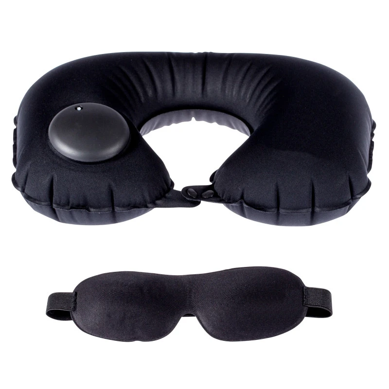 Le kit indispensable pour tous les voyageurs ! En effet, avec ce kit vous pourrez facilement dormir en bateau, en avion, en camping-car ou sous la tente de camping et randonnée ! Ce kit se compose en premier lieu d’un très confortable oreiller tour du cou gonflable avec pompe à air intégrée et touché extérieur doux.