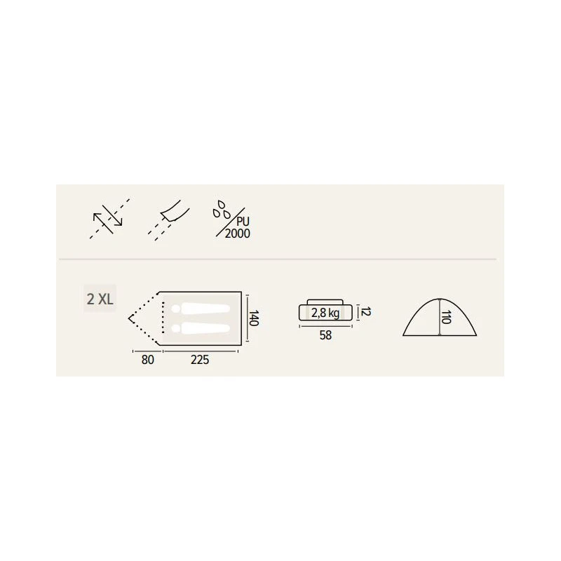 Cette tente avec un revêtement en polyester est imperméable. Conçue pour pouvoir accueillir 2 personnes, elle possède également un abside de rangement afin de déposer vos affaires humides ou encore vos chaussures à l’entrée de votre tente.