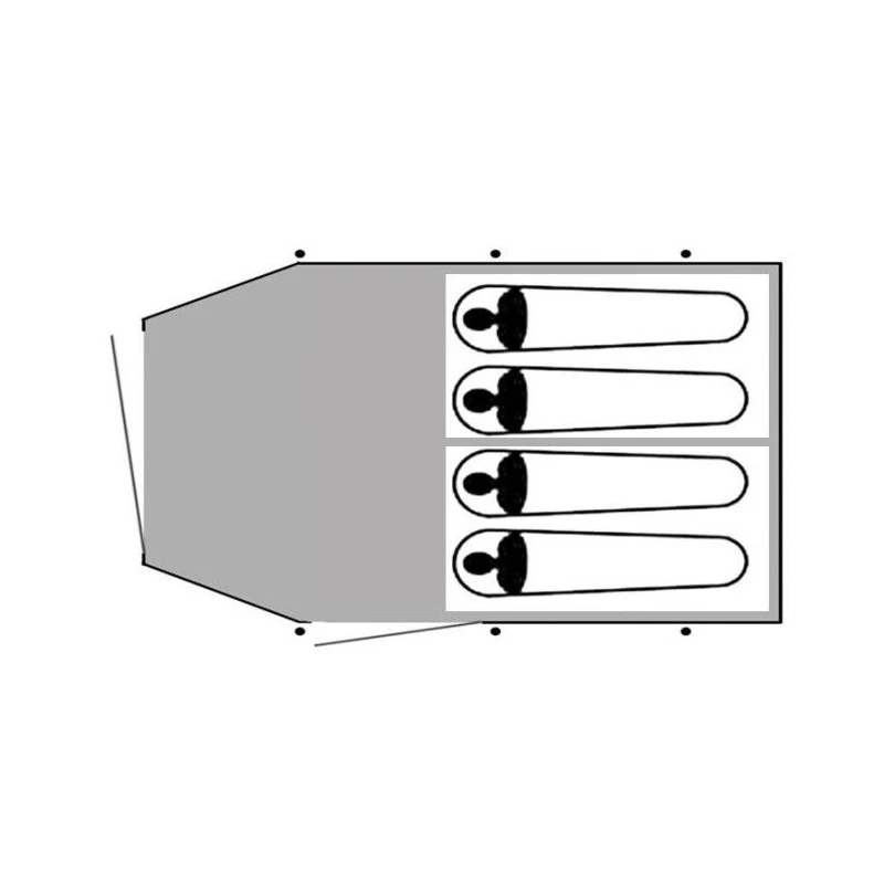 – Membrane extĂ©rieur (toit) : Nouveau tissu Ripstop Polyester 210T, PU + double traitement anti UV, Ă©tanche Ă une colonne d’eau de 2000 mm